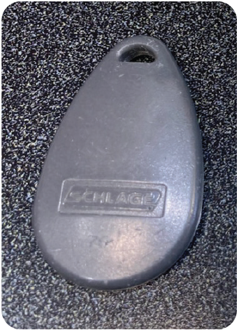 Once you have retrieved the keys you can access the building via the entrance to the right of the cement pillar. The fob reader is just to the left of the door.