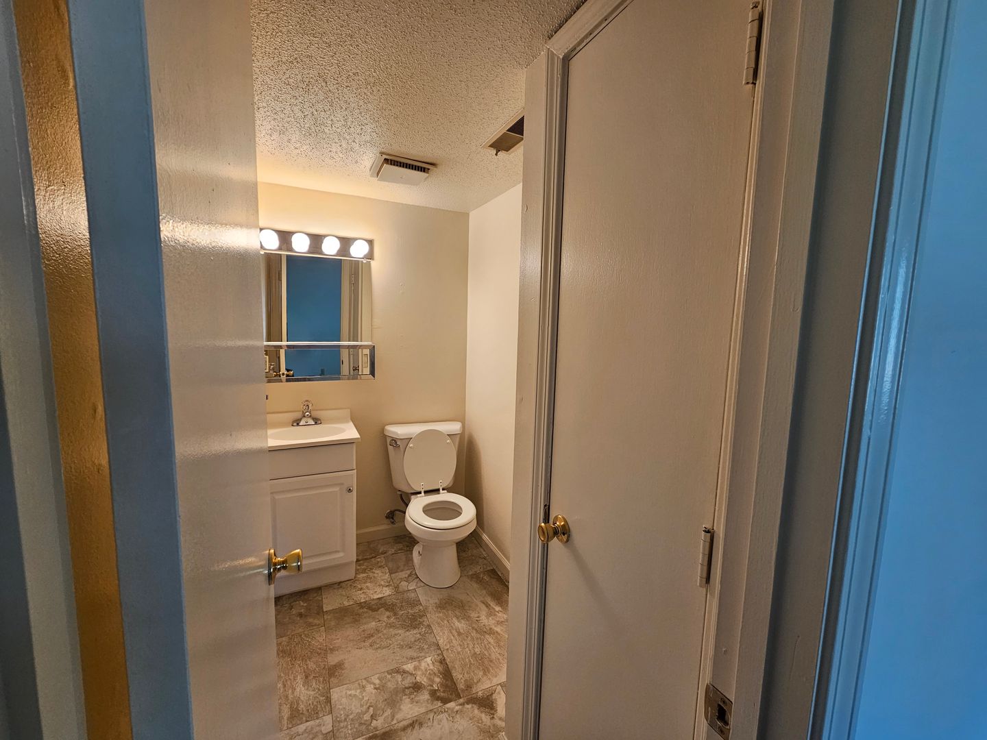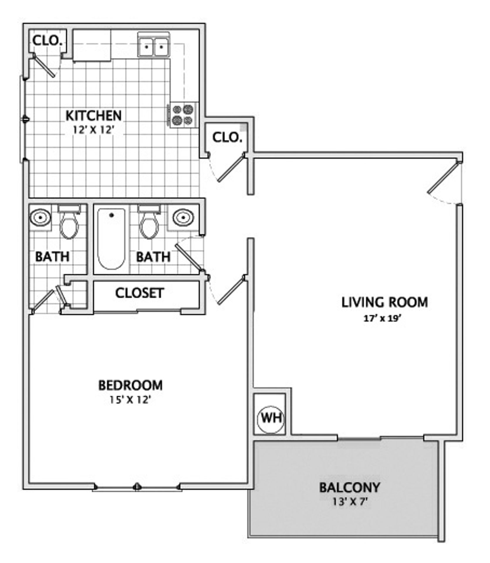 This 1 bedroom 1.5 bathroom floorplan features a private balcony/patio and central air.