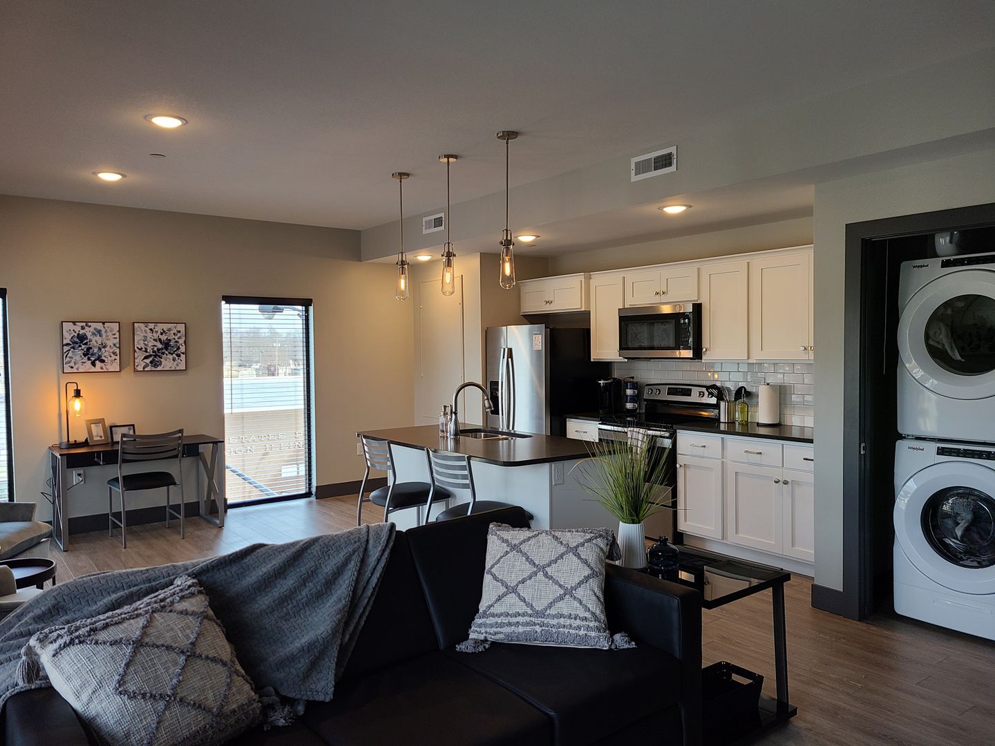 520 Neil is a luxury apartment building in Downtown Champaign, IL featuring one and two-bedroom units. Each unit includes open floor plans with large oversized windows to allow for natural lighting and city views. The building also features walk-in closets, in-unit laundry, high ceilings, balconies, wall-mounted smart TVs, fiber internet, solid stone countertops, stainless steel appliances, and more. All under Royse + Brinkmeyer's award-winning management.