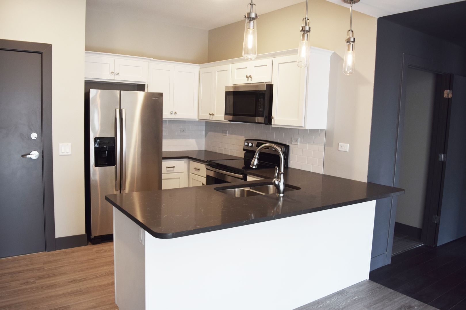 520 Neil is a luxury apartment building in Downtown Champaign, IL featuring one and two-bedroom units. Each unit includes open floor plans with large oversized windows to allow for natural lighting and city views. The building also features walk-in closets, in-unit laundry, high ceilings, balconies, wall-mounted smart TVs, fiber internet, solid stone countertops, stainless steel appliances, and more. All under Royse + Brinkmeyer's award-winning management.