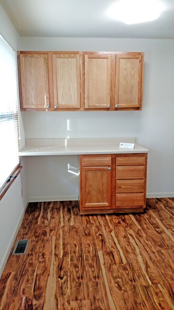 The Lodge is our most popular floorplan at Healey Gardens. It is a cute two-bedroom one-bathroom floorplan with tons of natural light. Our remodelled version of this cozy floorplan features extra cabinet space in the kitchen!